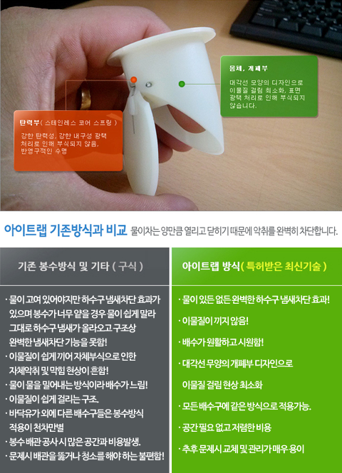모든 질병의 원인이라 생각합니다. 건강한 생활을 위해서는 하수구악취 및 세균차단이 필수입니다.